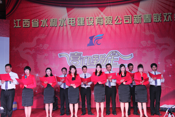 玉兔辭舊歲,瑞龍迎新春。1月18日,江西省水利水電建設有限公司2012年迎新春聯(lián)歡會在南昌市新東方大酒店隆重舉行,來自公司總部、國內(nèi)外分公司、各專業(yè)公司、施工項目部的300余名管理人員及員工歡聚一堂,共賀新春。