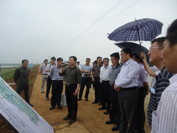 當天一大早,董力一行乘船從星子縣出發(fā)趕赴余干縣。在康山大堤鑼鼓山碼頭上岸后,先后來到我司承建完工的鑼鼓山排澇泵站改造工程和康山3標工地康山蓄滯洪區(qū)分洪門施工段(KS20+500),并在分洪門施工段(KS20+500)聽取了余干縣水利部門的有關(guān)情況匯報。在看到康山大堤除險加固工程已進入掃尾階段,大堤堤面寬闊,董力表示滿意。