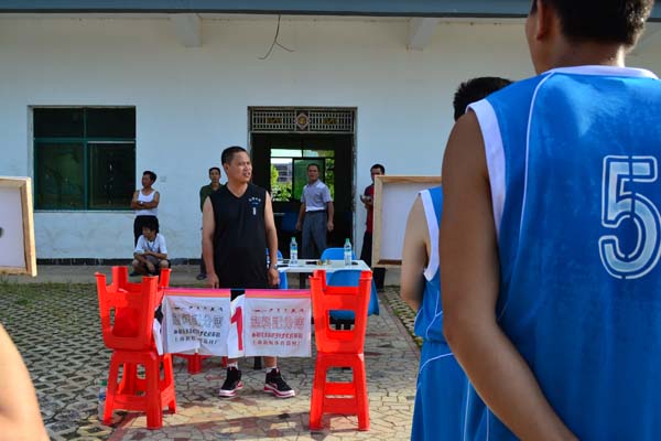 金灘鎮黨委書記京海華宣布“江西水建杯”籃球賽開始