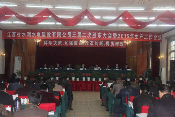 春回大地,萬(wàn)象更新,正值全國(guó)兩會(huì)召開(kāi)之際,江西省水利水電建設(shè)有限公司第三屆二次股東大會(huì)暨2015年生產(chǎn)工作會(huì)議,于3月10日在南昌隆重召開(kāi)。公司董事、監(jiān)事、股東、中高層管理人員及員工代表共86名代表會(huì)聚一堂,共商公司改革發(fā)展大計(jì),描繪企業(yè)美好藍(lán)圖。