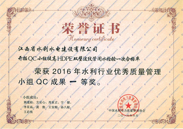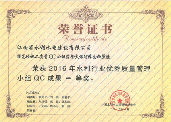 2016年6月20日至24日,中國水利電力質量管理協會水利分會在安徽省安慶市,舉辦了2016年水利行業優秀質量管理小組成果發表會,并在本次發表會上發布了156項QC成果。中國水利電力質量管理協會水利分會組織評審專家,對發表的QC成果進行了現場評審,對經評審獲得一、二等獎的單位進行了表彰。本次成果發表會上,我公司共有3項QC成果獲一等獎,兩項QC成果獲二等獎,成績較往年有較大幅度提高。