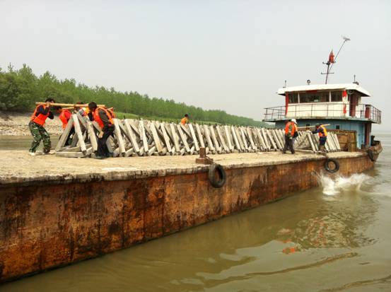 在省水利廳重點部署與高位推進下,省河湖局急事急辦,嚴格按照水利基建程序辦事,根據投資情況在江新洲和棉船洲各安排了1個施工標段,選擇對兩座江心洲中9處重點險段進行應急處理。項目從2011年1月20日前期調研、2月22日方案審批、3月3日完成招投標等前期工作一氣呵成,于3月9日組織參建單位進場開工。
