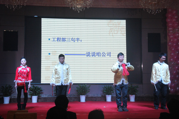 聯(lián)歡會現(xiàn)場喜氣洋洋,洋溢著新春的喜慶。董事長兼總經理王元旦宣讀了2013年度優(yōu)秀表彰決定,并與公司領導班子一起,為海外公司等10個優(yōu)秀團隊、黃鄭民等18位優(yōu)秀管理者和劉愚等21位優(yōu)秀員工進行頒獎。王總表示,希望受到表彰的先進集體和先進個人倍加珍惜榮譽,戒驕戒躁、再接再厲,以更加開闊的眼界、更加務實的精神和更加昂揚的斗志再創(chuàng)佳績;希望全司員工向先進學習,以先進為榜樣,認真學習貫徹黨的十八屆三中全會精神,勤奮工作、開拓創(chuàng)新,推動公司更好更快地發(fā)展,為全面實現(xiàn)“公司強,員工富”的目標而努力奮斗!