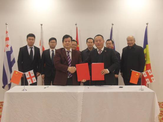 12月15日,公司董事長王元旦、海外公司總經理黃鄭民一行與格魯吉亞絲綢之路合作有限公司董事長劉濟民在江西中格文化交流中心舉行格魯吉亞市場全面合作協議簽約儀式。